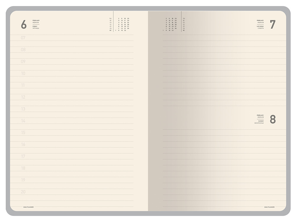 Элегантный датированный ежедневник "Megapolis Color" от Bruno Visconti идеально подходит для организации рабочего дня и ведения важных записей. Обложка из искусственной кожи с приятным на ощупь покрытием Soft Touch и обрез в тон создают гармоничный образ. Внутри – блок из бежевой бумаги плотностью 70 г/кв.м с разделами для планирования, календарем на 2026-2027 год и полезной справочной информацией. Для удобства навигации предусмотрена закладка-ляссе шириной 7 мм в цвет обложки.