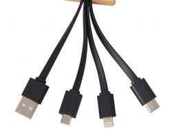 Универсальный зарядный кабель 3-в-1 — элегантное решение для владельцев любых гаджетов. С тремя разъемами (USB-C, micro USB, Lightning), он заменяет три кабеля в одном компактном корпусе, выполненном из натурального бамбука и переработанного ABS-пластика. Это не просто практичный аксессуар — это экосознательный стиль, который подчеркнёт ваш вкус и заботу об окружающей среде. Встроенная белая подсветка с возможностью нанесения логотипа добавляет изюминку: ваш бренд или инициалы мягко светятся при подключении, создавая эффект премиальности и индивидуальности. Идеален для повседневного использования, путешествий и в качестве запоминающегося корпоративного подарка.