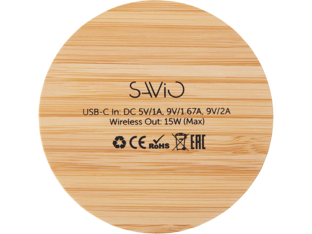 Заряжайте устройства с элегантностью и заботой о планете — с беспроводным зарядным устройством на 15 Вт, выполненным из натурального бамбука и переработанного ABS-пластика. Это не просто функциональный гаджет, а стильный элемент интерьера, который органично впишется в ваш дом, офис или коворкинг. Благодаря поддержке быстрой беспроводной зарядки до 15 Вт, ваш смартфон восполняет энергию без лишних проводов и суеты. А встроенная белая подсветка логотипа добавляет изюминку: ваш бренд или инициалы мягко светятся при зарядке, создавая атмосферу уюта и индивидуальности. Идеальный выбор для тех, кто ценит экологичность, технологии и эстетику.