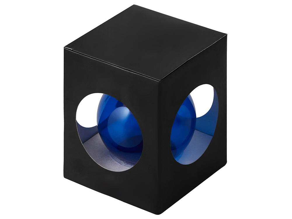 Стеклянный елочный шар "Christmas bauble", синий прозрачный, с серебристым колпачком в черной коробке