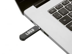 Элегантная металлическая ручка, отличительной особенностью которой является наличие флешки на 16 Гб в верхней части клипа.