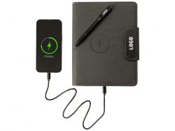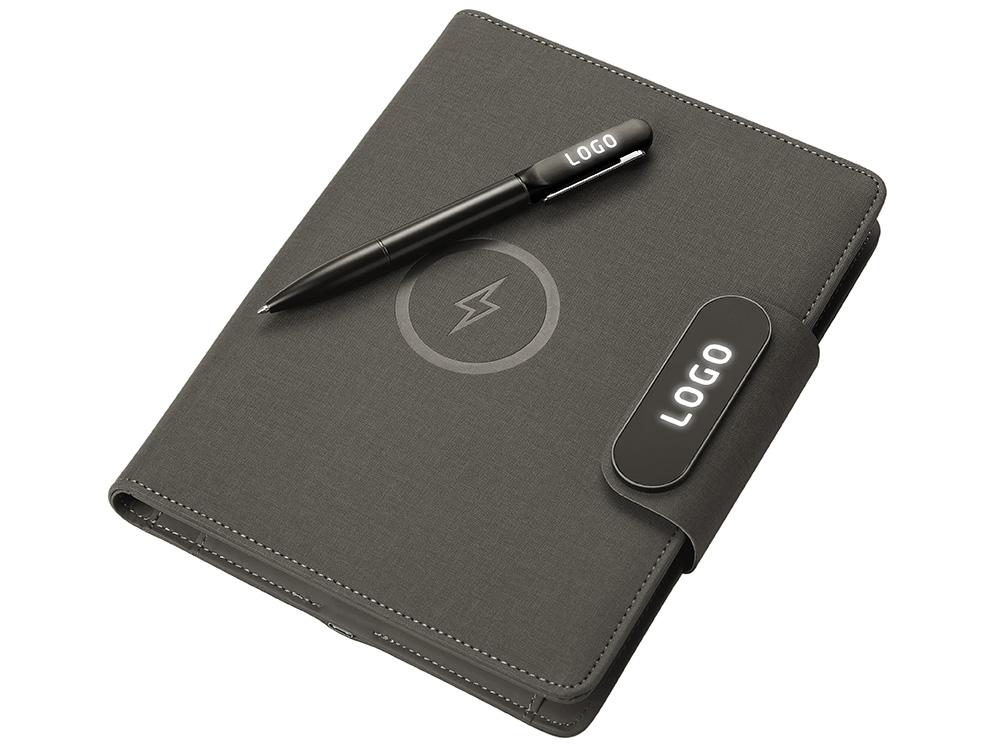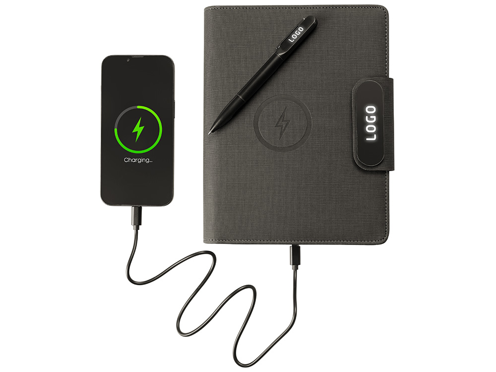 Подарочный набор «Twilight»: органайзер А5 с беспроводной зарядкой и металлическая шариковая ручка со светящимся логотипом