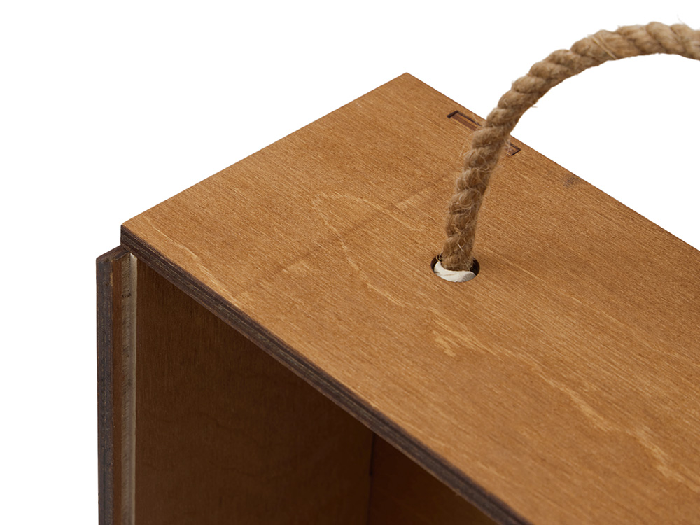 Подарочная коробка из фанеры Constellation 330х220х100 мм, фанера 6 мм, крышка на выдвижных пазах черная ЛХДФ 3 мм, бечевка