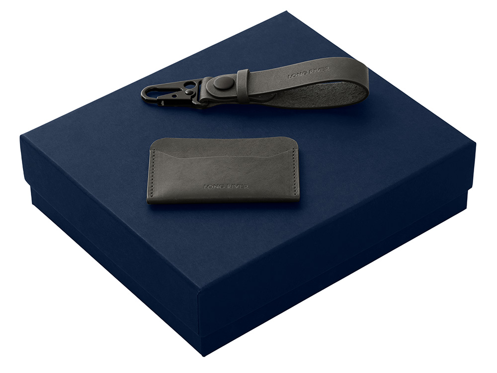 Подарочный набор Long River: картхолдер, ремешок для ключей, синяя коробка