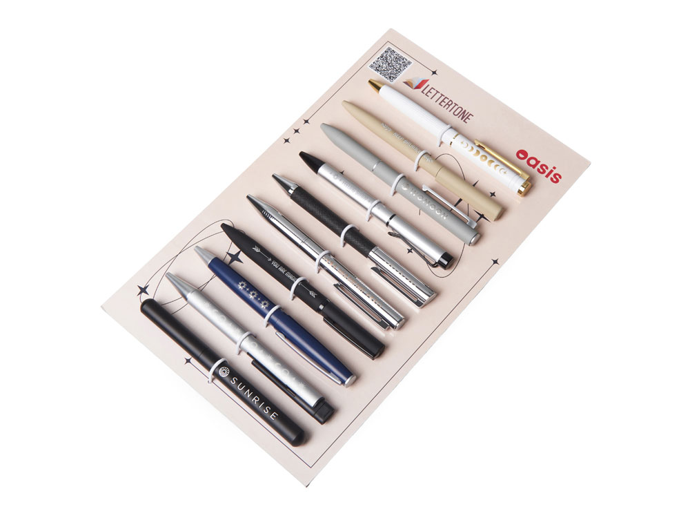 Промо-набор — идеальный инструмент для презентаций: клиенты могут подержать ручки в руках, опробовать их в деле и наглядно увидеть различия между вид