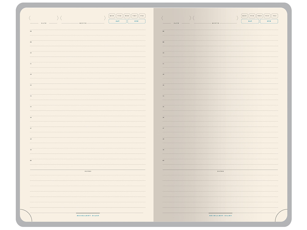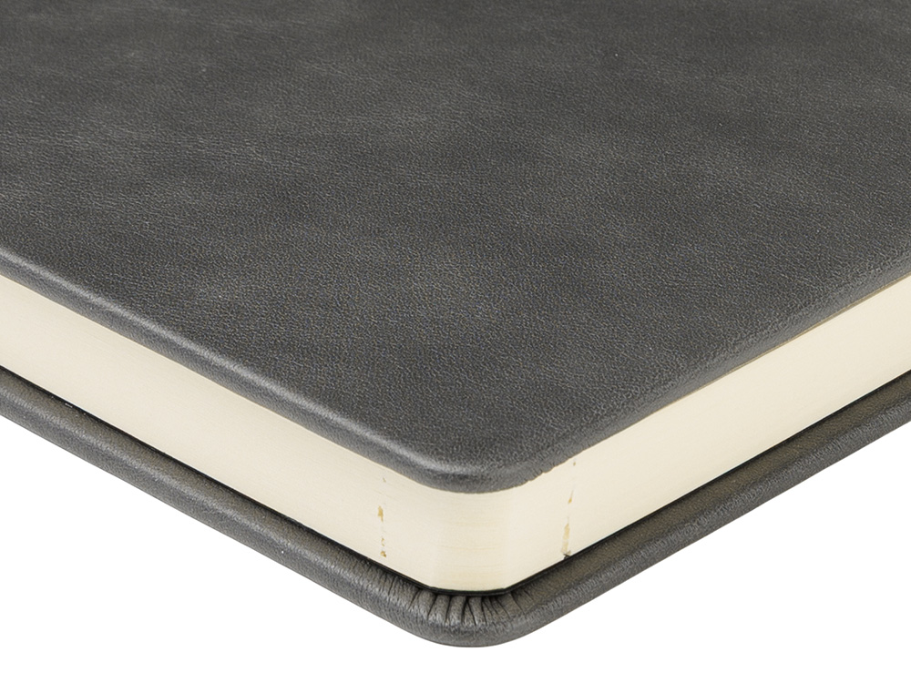 Твердую обложку из высококачественной искусственной кожи дополняет металлический хлястик на магните. Ляссе в цвет обложки позволяет быстро найти нужную страницу. Блок в 272 страницы произведен из бежевой бумаги плотностью 70 г/кв.м и имеет раздел справочной информации на 19 страницах. Для удобства навигации все углы блока перфорированы, имеют скруглённую форму.