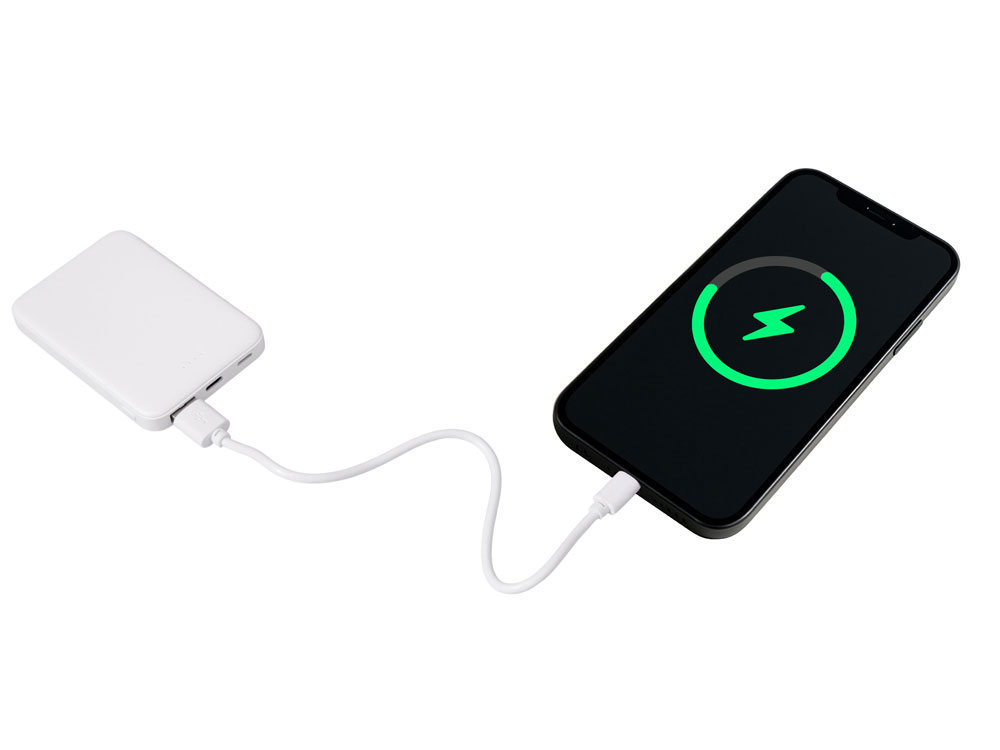 Стильный, тонкий и практичный — этот 5000 мАч повербанк создан для тех, кто ценит мобильность и универсальность. Идеальный корпоративный подарок для клиентов, партнёров и сотрудников, которые всегда в движении! Совместим со всеми смартфонами, имеется двунаправленный USB-C и дополнительное удобство - входной разъем Lightning. Разъемы USB-C и USB-A обеспечивают одновременную зарядку двух устройств. Благодаря мини размерам 91.5*62* мм и лёгкому весу (всего 102 г) легко помещается даже в карман рубашки или кошелёк. Лаконичная матовая поверхность выгодно подчеркнет логотип, а надёжная система защиты гарантирует безопасность при каждой зарядке. Поставляется в продуманной выдвижной упаковке с быстрым и эффектным открытием.
