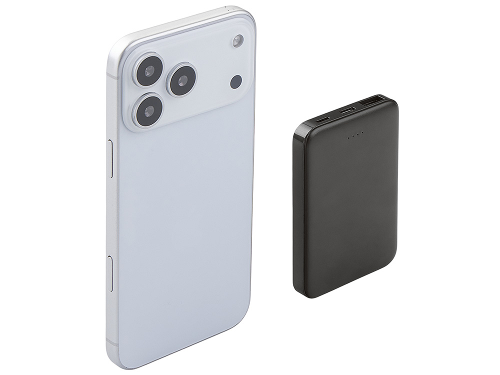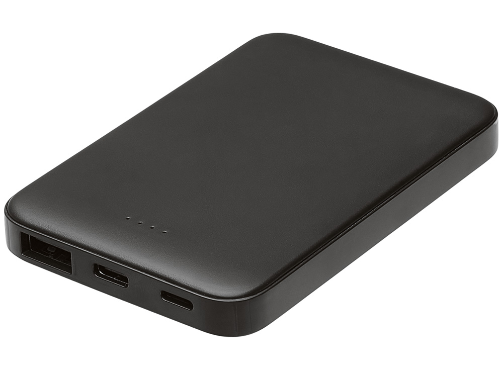 Стильный, тонкий и практичный — этот 5000 мАч повербанк создан для тех, кто ценит мобильность и универсальность. Идеальный корпоративный подарок для клиентов, партнёров и сотрудников, которые всегда в движении! Совместим со всеми смартфонами, имеется двунаправленный USB-C и дополнительное удобство - входной разъем Lightning. Разъемы USB-C и USB-A обеспечивают одновременную зарядку двух устройств. Благодаря мини размерам 91.5*62* мм и лёгкому весу (всего 102 г) легко помещается даже в карман рубашки или кошелёк. Лаконичная матовая поверхность выгодно подчеркнет логотип, а надёжная система защиты гарантирует безопасность при каждой зарядке. Поставляется в продуманной выдвижной упаковке с быстрым и эффектным открытием.