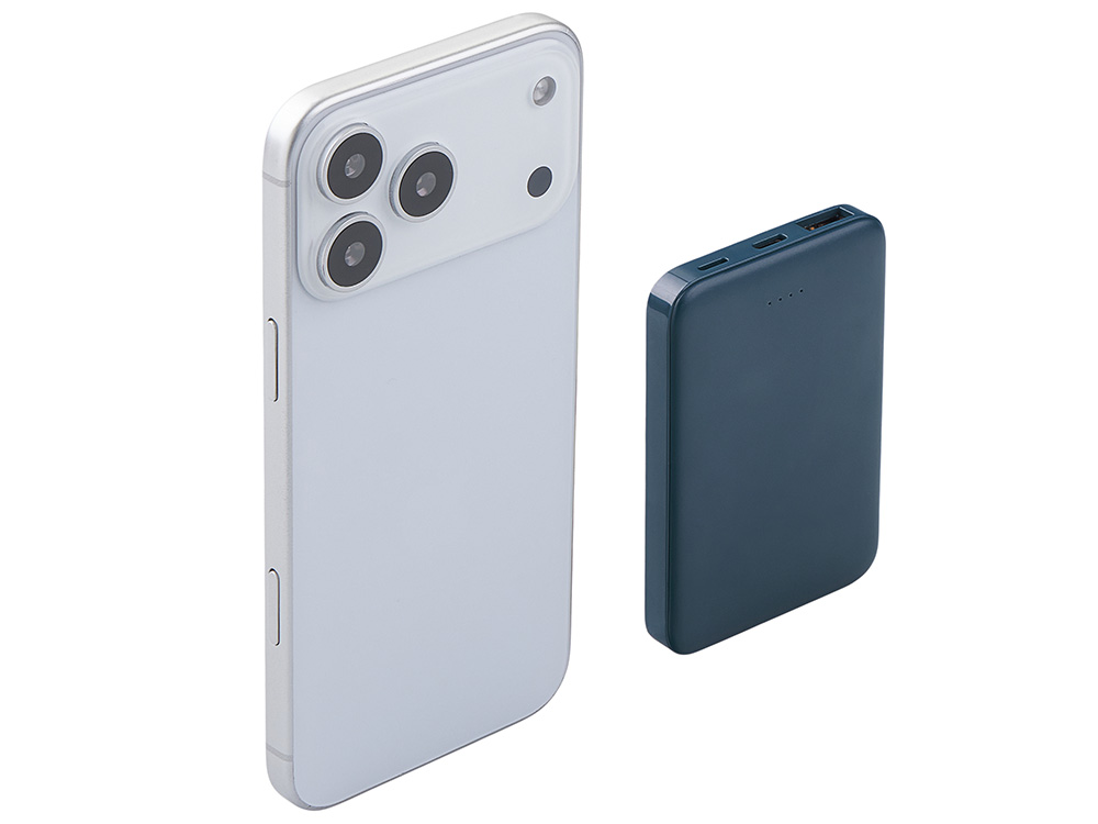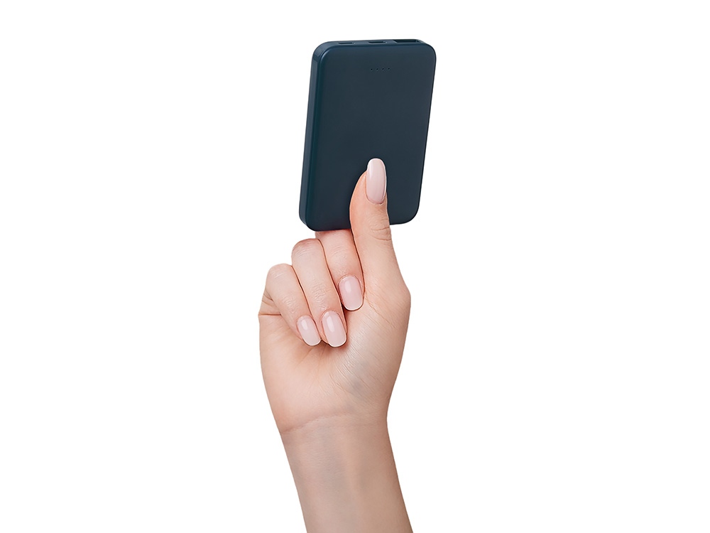 Стильный, тонкий и практичный — этот 5000 мАч повербанк создан для тех, кто ценит мобильность и универсальность. Идеальный корпоративный подарок для клиентов, партнёров и сотрудников, которые всегда в движении! Совместим со всеми смартфонами, имеется двунаправленный USB-C и дополнительное удобство - входной разъем Lightning. Разъемы USB-C и USB-A обеспечивают одновременную зарядку двух устройств. Благодаря мини размерам 91.5*62* мм и лёгкому весу (всего 102 г) легко помещается даже в карман рубашки или кошелёк. Лаконичная матовая поверхность выгодно подчеркнет логотип, а надёжная система защиты гарантирует безопасность при каждой зарядке. Поставляется в продуманной выдвижной упаковке с быстрым и эффектным открытием.