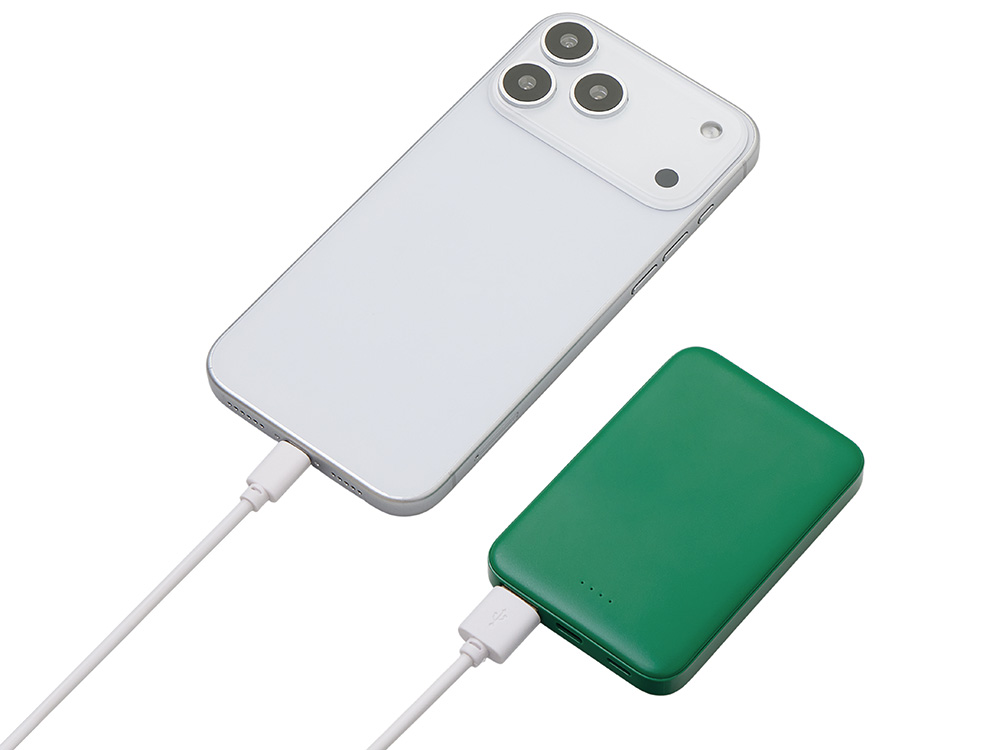 Стильный, тонкий и практичный — этот 5000 мАч повербанк создан для тех, кто ценит мобильность и универсальность. Идеальный корпоративный подарок для клиентов, партнёров и сотрудников, которые всегда в движении! Совместим со всеми смартфонами, имеется двунаправленный USB-C и дополнительное удобство - входной разъем Lightning. Разъемы USB-C и USB-A обеспечивают одновременную зарядку двух устройств. Благодаря мини размерам 91.5*62* мм и лёгкому весу (всего 102 г) легко помещается даже в карман рубашки или кошелёк. Лаконичная матовая поверхность выгодно подчеркнет логотип, а надёжная система защиты гарантирует безопасность при каждой зарядке. Поставляется в продуманной выдвижной упаковке с быстрым и эффектным открытием.
