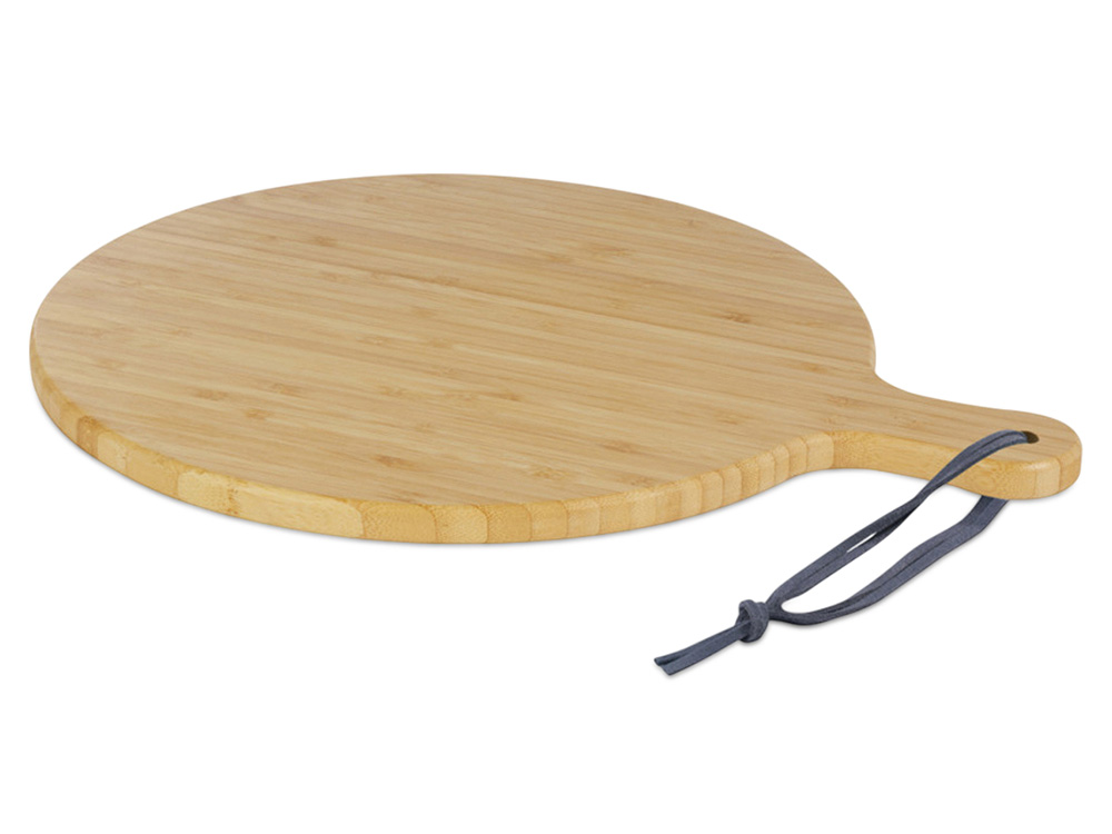Разделочная доска Delys изготовлена из бамбука и идеально подходит для частных лиц и предприятий, которые предпочитают более экологичные товары. Диаметр доски: 30,5 см. Длина ручки: 8 см. Толщина доски: 1,4 см. Не подходит для микроволновой печи или посудомоечной машины.