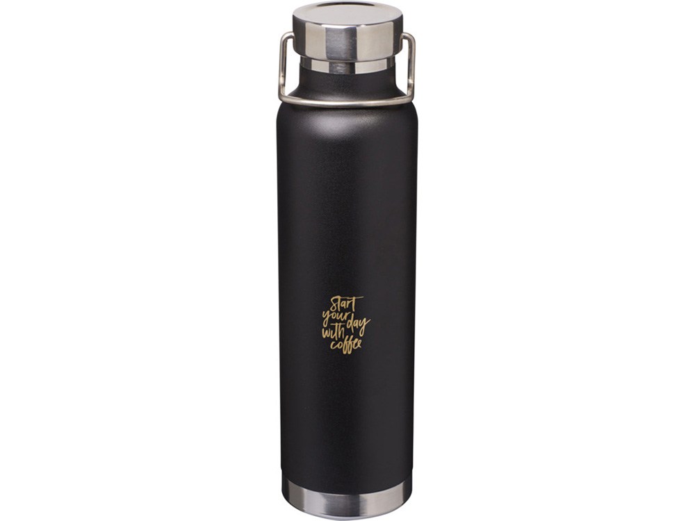 Бутылка для воды с вакуумной изоляцией Thor объемом 650 мл из переработанной нержавеющей стали, сертифицированной по стандарту RCS - сплошной черный