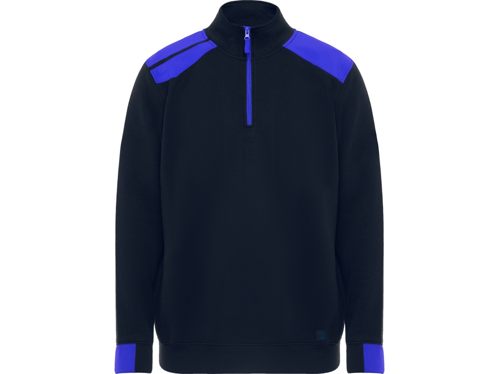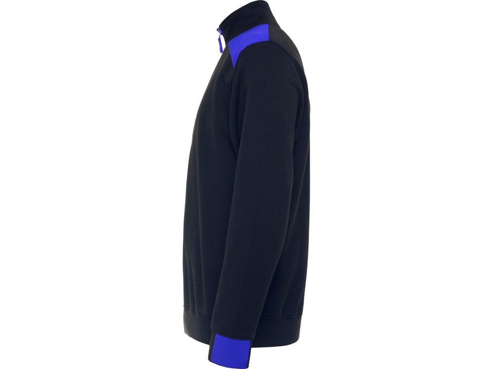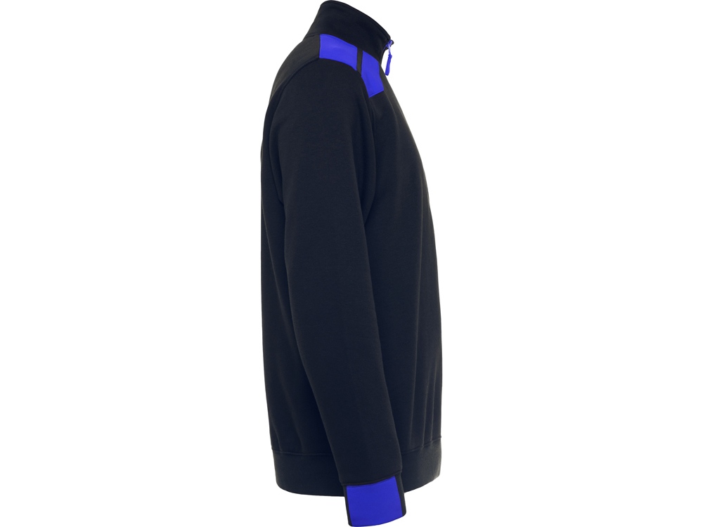 Толстовка с воротом- стойкой на молнии с сочетанием двух цветом. Половина манжет и низ изделия из рибового полотна 1х1. Укрепляющая отстрочка по внутреннему воротнику. Контрастные плечи , детали, молния и манжеты