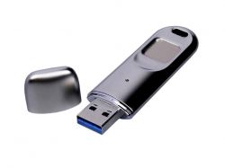Классическая металлическая флешка с колпачком и сканером отпечатков пальцев.