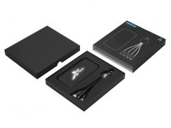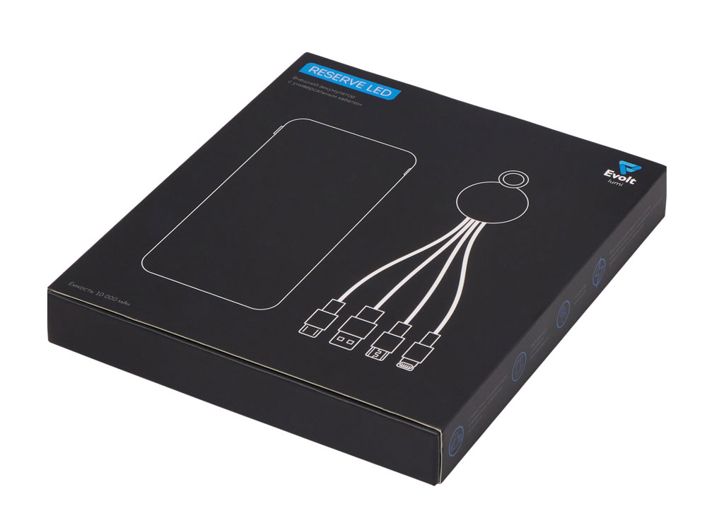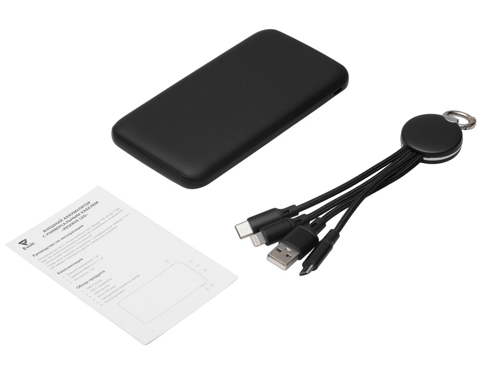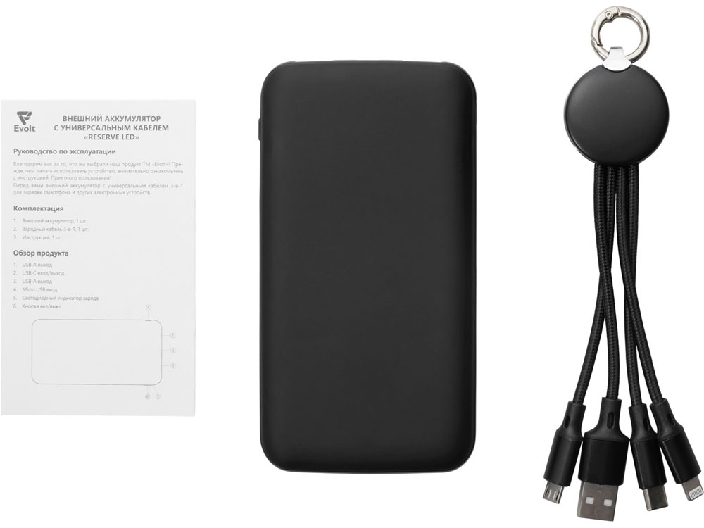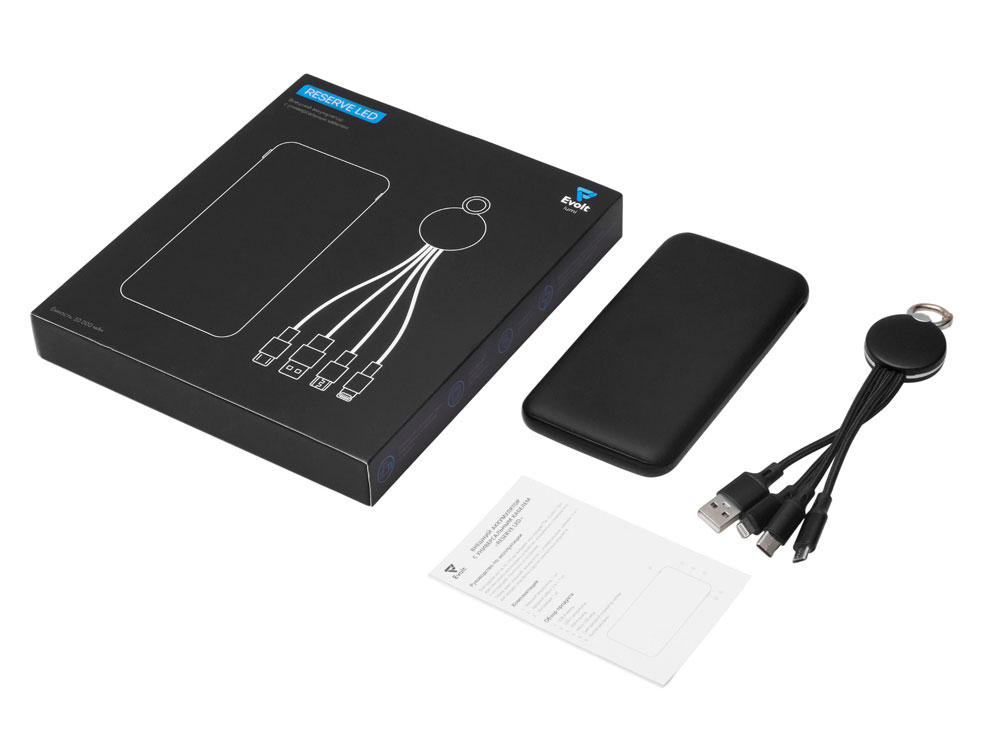 Набор из внешнего акуумулятора и универсального кабеля с подсветкой лого «Reserve LED», 10000mAh, черный