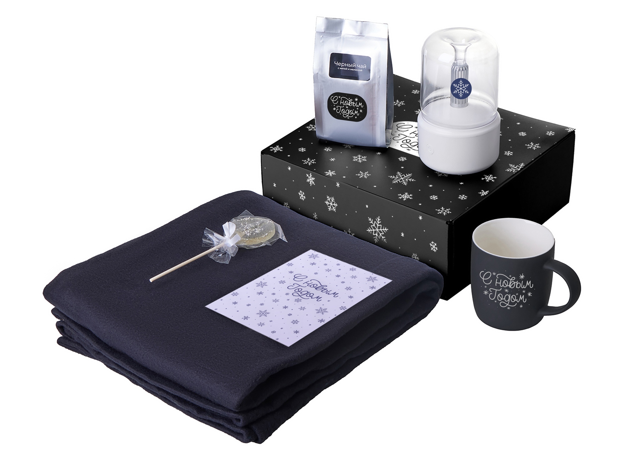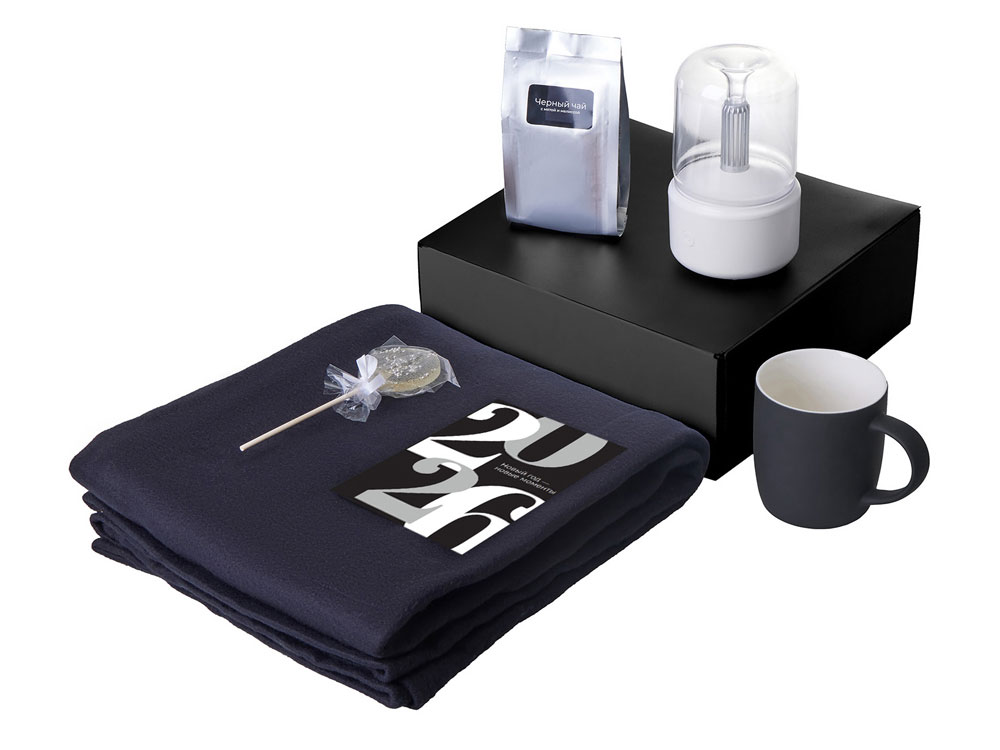 Подарочный набор с пледом, увлажнителем и кружкой, черный