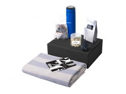 Подарочный набор c пледом, термосом, свечой и миндалем, синий