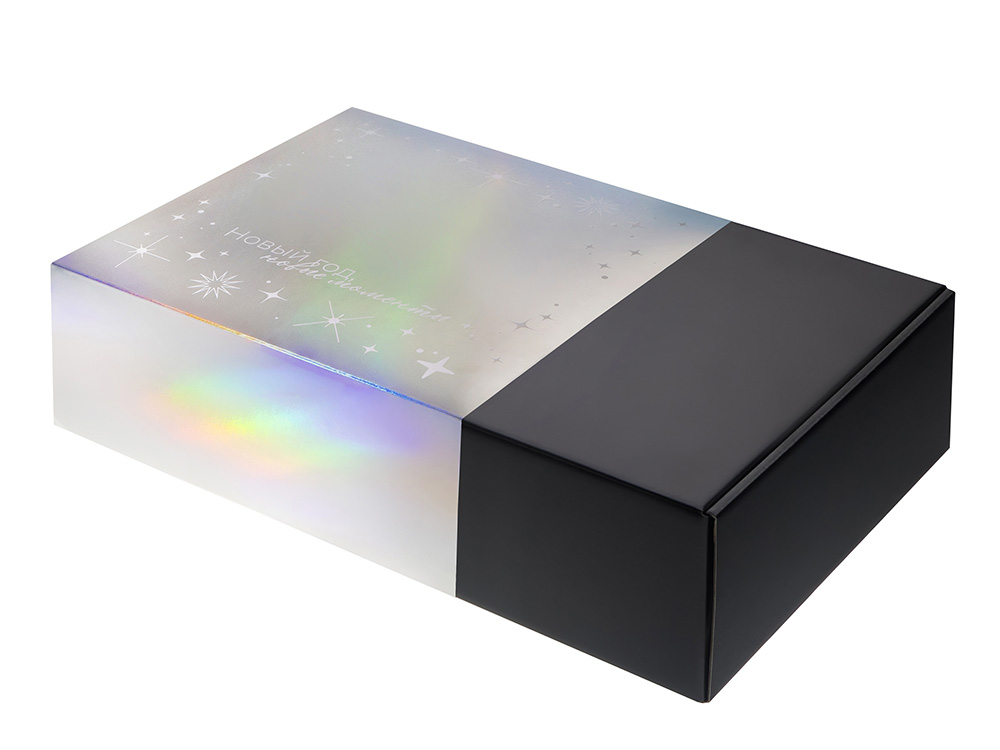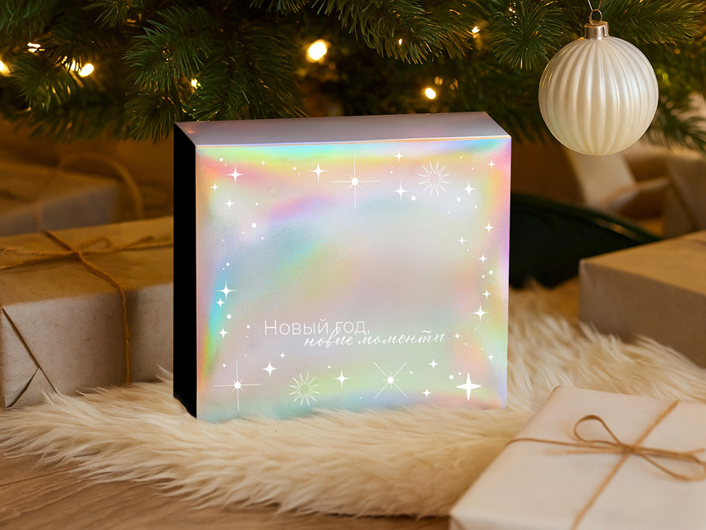 Упаковка — это первое впечатление о подарке. В преддверии Нового года особенно важно создать атмосферу праздника — стильная и аккуратно выполненная коробка с голографическим шубером сразу вызывает ощущение заботы, уюта и волшебного ожидания.