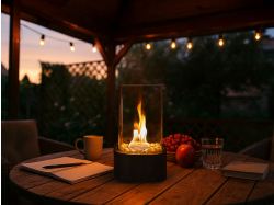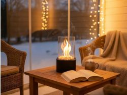 Камин работает на жидком биотопливе на основе этанола (в комплект не входит), не выделяет дыма или едкого запаха, не требует дымохода и сложной установки. Компактный и экологически безопасный, он идеально подходит для любых пространств.