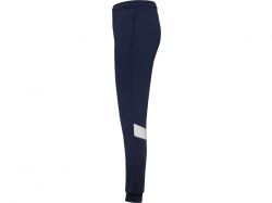 Спортивные брюки с эластичным поясом и шнурком. Боковые карманы закрываются на молнию. Контрастные лампасы белого цвета. Низ с манжетами из риба 1х1. Может быть с комбинирован с курткой Leros.