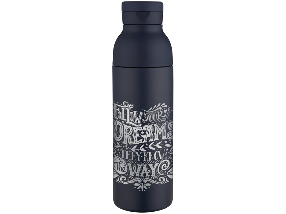 Illuminate бутылка для воды объемом 650 мл из переработанной нержавеющей стали RCS с двойными стенками и набором из 3 крышек - Синий Navy
