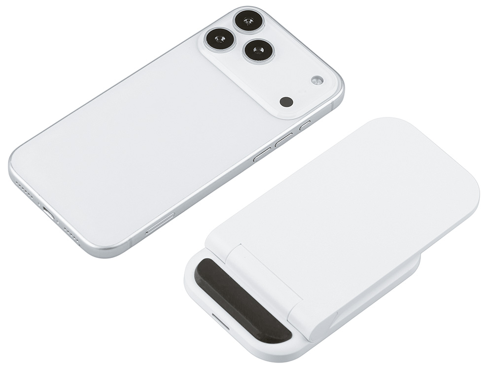 Идеальное решение для современного пользователя 2-в-1 — универсальная беспроводная зарядка-подставка. Два центра зарядки позволяют удобно размещать смартфон как в вертикальном, так и в горизонтальном положении. Благодаря складной конструкции устройство легко помещается в сумку или на полку, не занимая лишнего места на рабочем столе. А если вы хотите превратить зарядку в персонализированный подарок или рекламный сувенир — передняя панель подставки может быть полностью запечатана ярким УФ-изображением любого дизайна. Стильная, функциональная и компактная — ваш телефон всегда будет заряжен и в порядке. Мощность беспроводной зарядки до 15 Вт (при наличии сетевого адаптера 18 Вт и выше). Поставляется в стильной коробке-слайдере.
