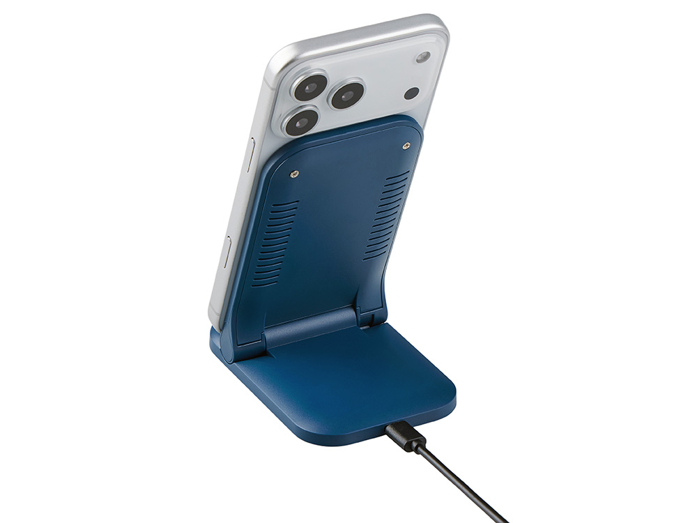 Идеальное решение для современного пользователя 2-в-1 — универсальная беспроводная зарядка-подставка. Два центра зарядки позволяют удобно размещать смартфон как в вертикальном, так и в горизонтальном положении. Благодаря складной конструкции устройство легко помещается в сумку или на полку, не занимая лишнего места на рабочем столе. А если вы хотите превратить зарядку в персонализированный подарок или рекламный сувенир — передняя панель подставки может быть полностью запечатана ярким УФ-изображением любого дизайна. Стильная, функциональная и компактная — ваш телефон всегда будет заряжен и в порядке. Мощность беспроводной зарядки до 15 Вт (при наличии сетевого адаптера 18 Вт и выше). Поставляется в стильной коробке-слайдере.