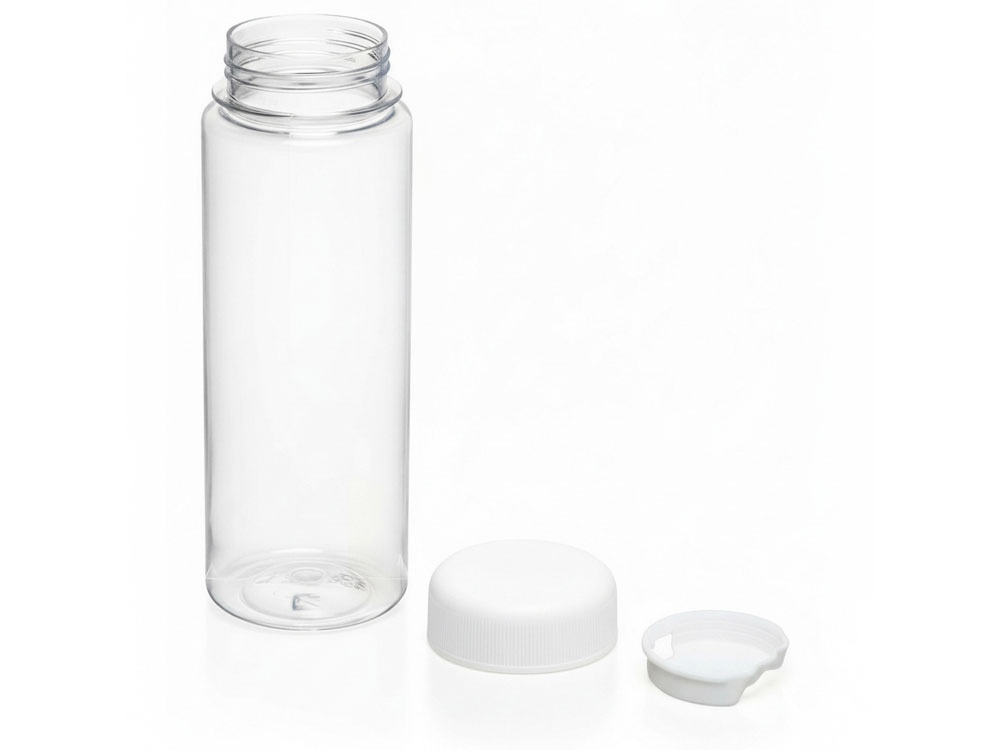 Лаконичный внешний вид позволяет нанести на аксессуар логотип компании. Прозрачный корпус дает возможность контролировать количество содержимого. Благодаря съемному фильтру в воду можно добавлять лимон, мяту и фрукты. Силиконовое кольцо предотвращает протекание, а крышка надежно закрывает бутылку.