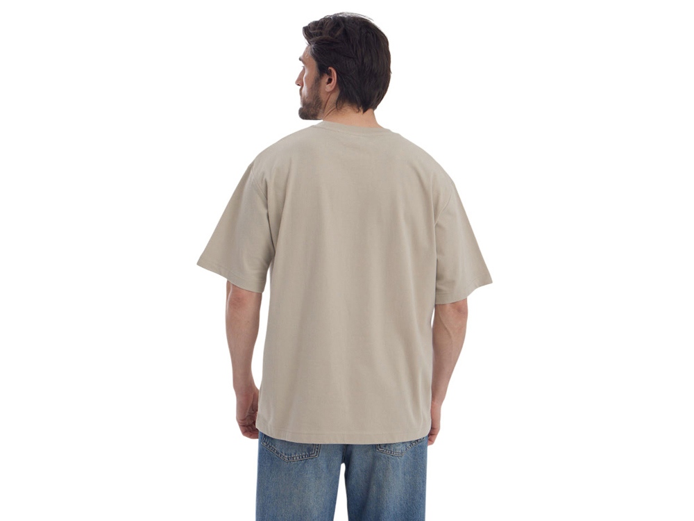 Футболка из 100% хлопкового полотна плотностью 180 г/м² — оптимальный баланс между комфортом, внешним видом и износостойкостью. Отделка пич-начёс придаёт ткани мягкую, бархатистую текстуру и благородный матовый эффект, делая изделие особенно приятным к телу.