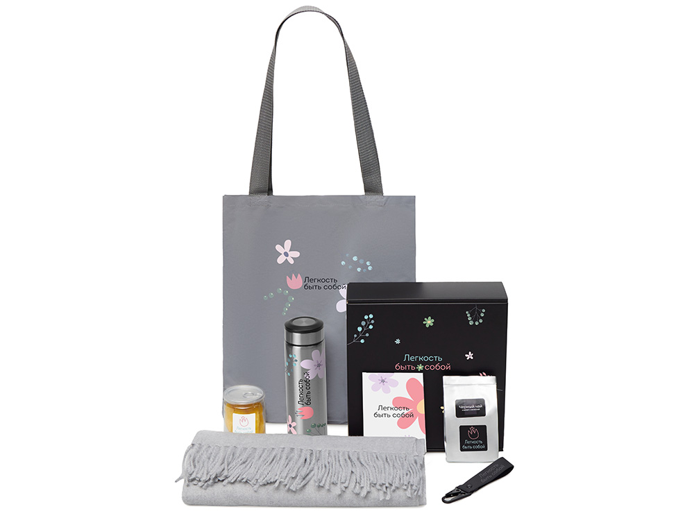 Подарочный набор «Re:f. Walk» с палантином, шоппером и термосом, серый