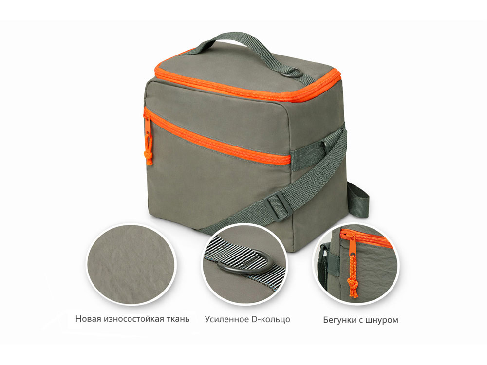 Изотермическая сумка-холодильник "Neo Classic" c контрастной молнией, серый/оранжевый
