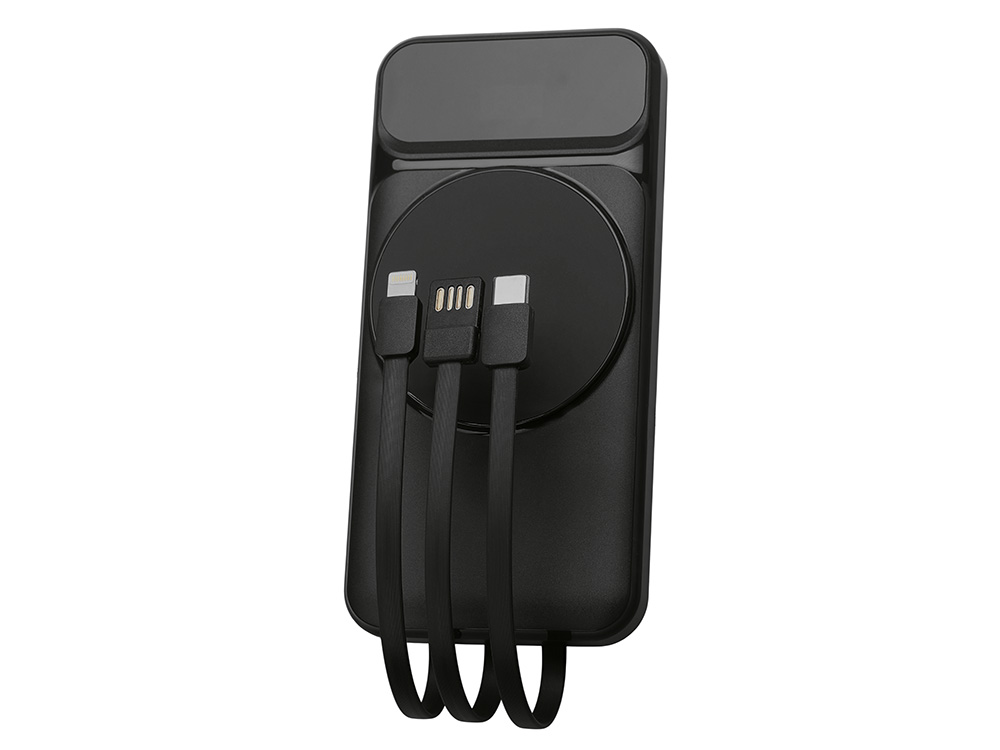 Магнитный беспроводной внешний аккумулятор со встроенными кабелями «Мэни»,быстаря зарядка, 10000 мАч, черный