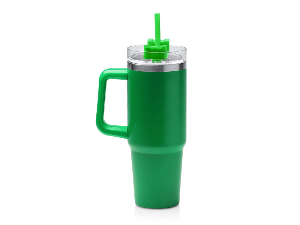 Двухстеночная термокружка из переработанной нержавеющей стали 304. Крышка с трубочкой и винтовой системой закрытия. Объём: 850 мл. Поставляется в дизайнерской коробке.