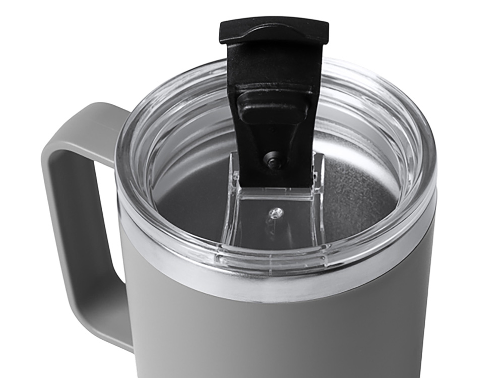 Термокружка из нержавеющей стали 304 (внутри) и полипропилена. В комплекте крышка с клапаном. Объём: 500 мл. Поставляется в дизайнерской коробке.
