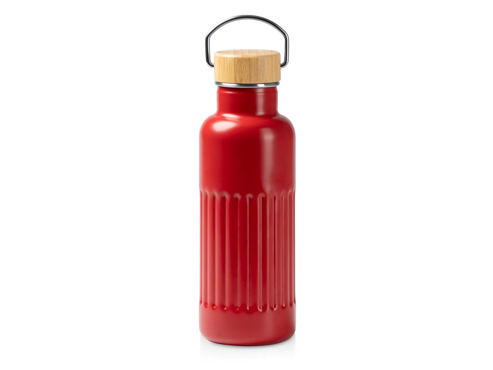 Термобутылка «Нобук» из переработанной нержавеющей стали, с бамбуковой крышкой, красный