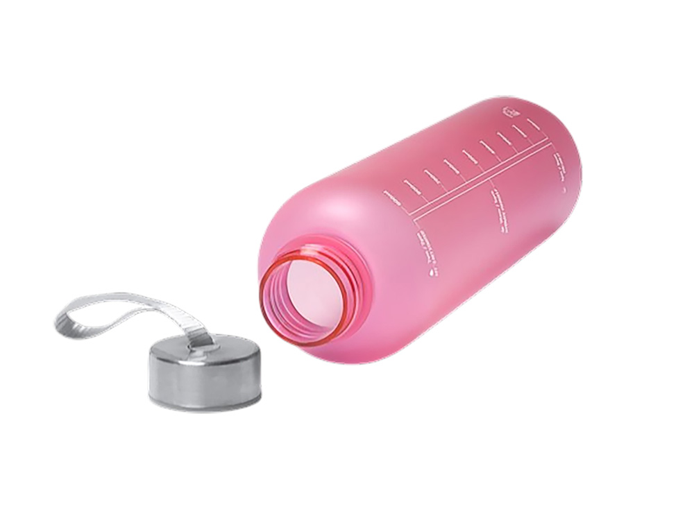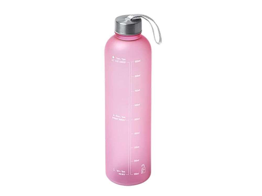 Бутылка для воды из пластика PCTG с полупрозрачным корпусом, навинчивающейся крышкой и ручкой для переноски. На корпусе есть шкала ёмкости и рекомендации по потреблению воды. Объем: 1 л. Поставляется в индивидуальной коробке.