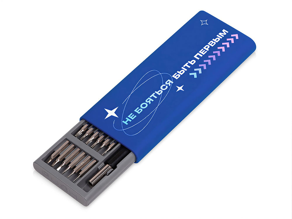 Отвертка с набором сменных насадок — лаконичная замена громоздкому комплекту отверток. 24 насадки для самых разных типов крепежа компактно хранятся в небольшом футляре, который удобно носить с собой. Замена насадки занимает считанные секунды. Минималистичный строгий дизайн превращает набор в функциональный бизнес-подарок.