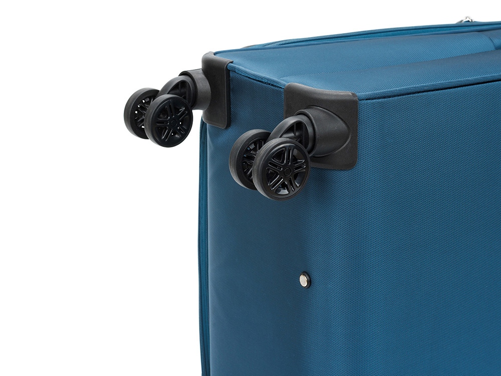 - 4 двойных колеса с вращением 360° — плавный ход и манёвренность.