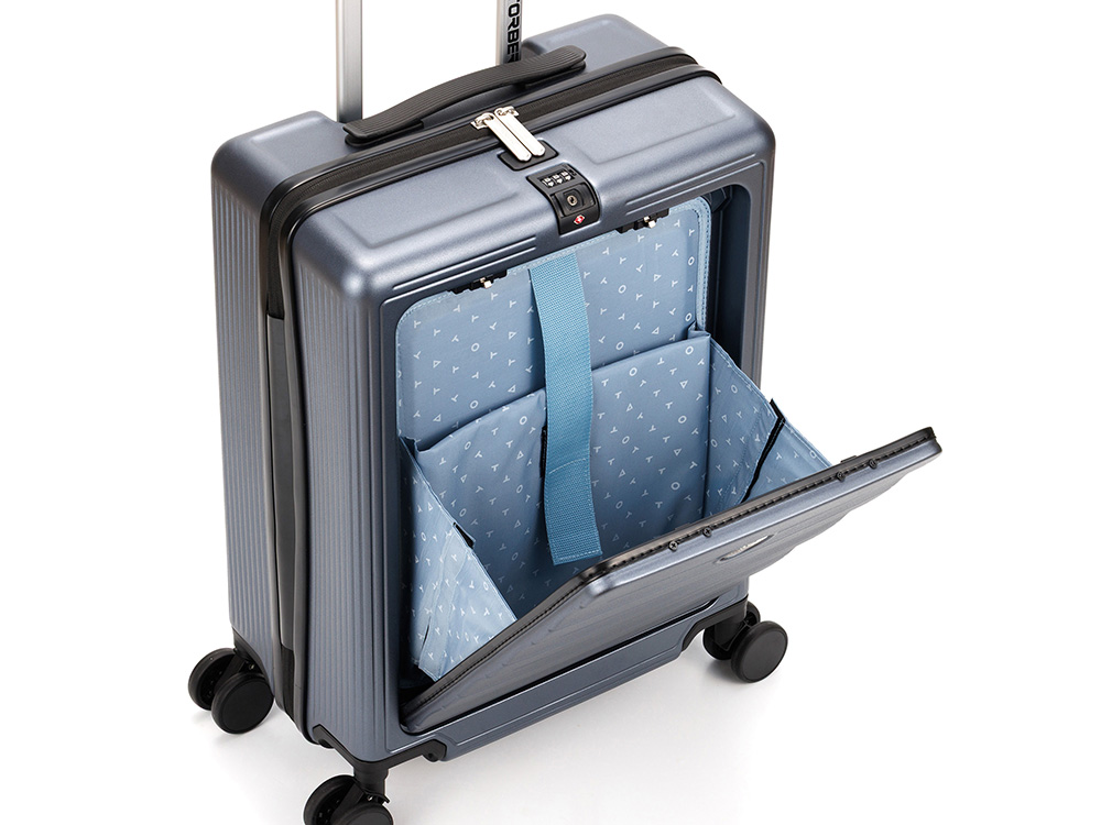 - Независимое переднее отделение с мгновенным доступом — удобно доставать ноутбук, документы или аксессуары без распаковки всего чемодана.