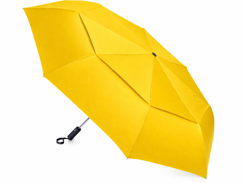 Купол этого складного зонта-автомата состоит из двух полотен и имеет большой диаметр 127 см. Прочный каркас и спицы из стекловолокна устоят при порывах ветра. Благодаря этому зонт служит надежным укрытием в самый сильный дождь. Закрывается в 3 сложения. Ручка обработана мягким покрытием soft-touch. Широкий хлястик для удобства персонализации.