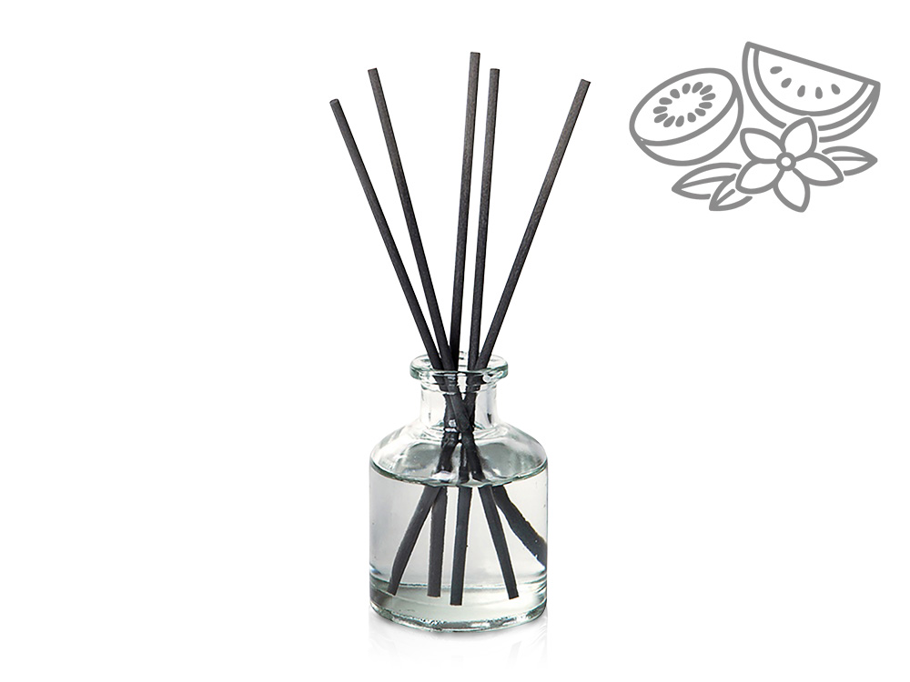 Объём диффузора 50 мл. Его будет достаточно для умеренного поддержания аромата в комнате до 15м2 в течение двух месяцев использования. Насыщенность аромата регулируется количеством используемых фибровых палочек.