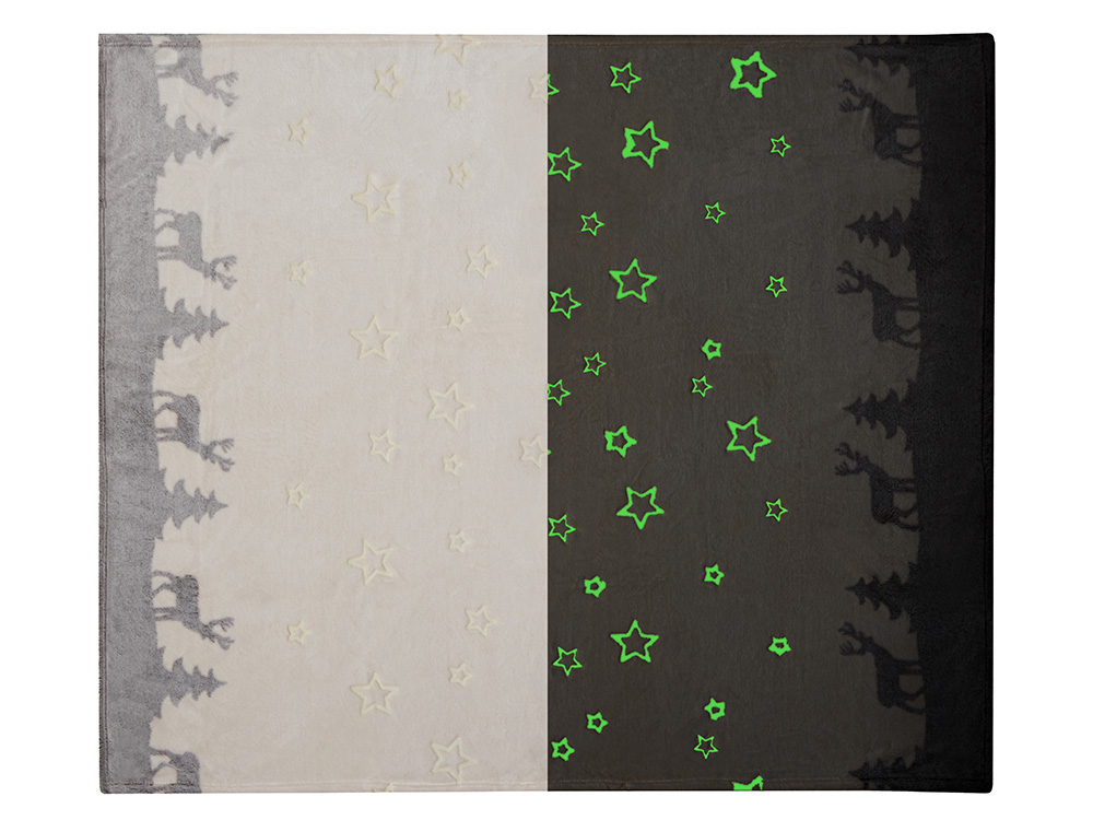 Размер 130х150 см, мягкий приятный на ощупь флис, новогодний принт светится в темноте, создаст уютную обстановку дома, подойдет под любой интерьер, согреет в прохладную погоду.