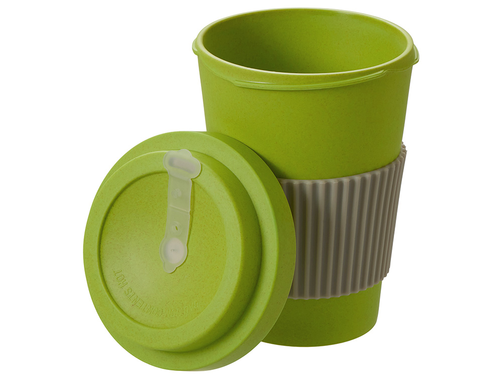 Термокружка “Muffin” изготовлена из экологически чистых материалов и на 70% состоит из натуральных бамбуковых волокон и кукурузного крахмала. Экокружка подходит как для горячих, так и для холодных напитков. Термокружку удобно и безопасно держать в руках, для этого на корпусе предусмотрена силиконовая манжета. При необходимости она может сниматься. Крышка содержит отверстие для питья, через которое удобно употреблять свой любимый напиток. Кружка не содержит бисфенол А и другие вредные примеси. Объем - 450 мл.