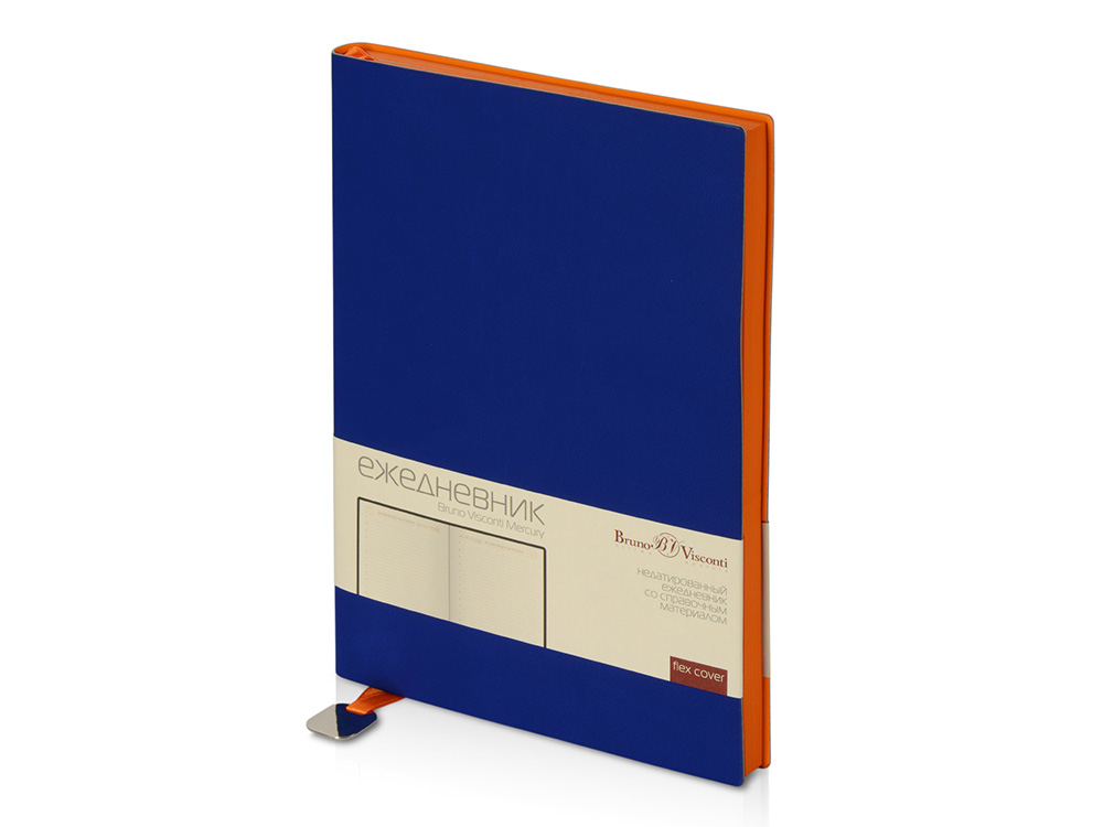 Недатированный ежедневник «Mercury» от бренда Bruno Visconti - это качественный корпоративный подарок по выгодной цене, произведенный специально под персонализацию. Представлен в современном формате А5. Обложка ежедневника выполнена из современного переплетного материала с двойной закладкой с шильдом. Цветной край блока, а также отделка листов цветными деталями - это переплетение технологических новинок и оригинальных дизайнерских решений.