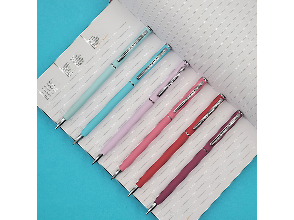Автоматическая металлическая ручка "Bruno Visconti" серии "Palermo" однотонного цвета порадует любителей всего изящного и утонченного. Покрытие корпуса Soft Touch гарантирует дополнительный комфорт в работе с ней. Стержень легко выдвигается благодаря поворотному механизму. Синие пигментные чернила Dokumental (Германия) и пишущий узел Premec (Швейцария) обеспечивают качественное и мягкое письмо.