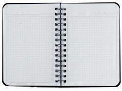Горизонтально ориентированный блокнот для записей. Линовка блока - клетка. Обложка сделана из матового непрозрачного пластика. Крепление блокнота на гребне позволяет открывать его на 360 градусов. При необходимости листы легко вырываются, не нарушая целостности блока. Блокнот подходит для записей небольшого объема информации. Готов к персонализации.