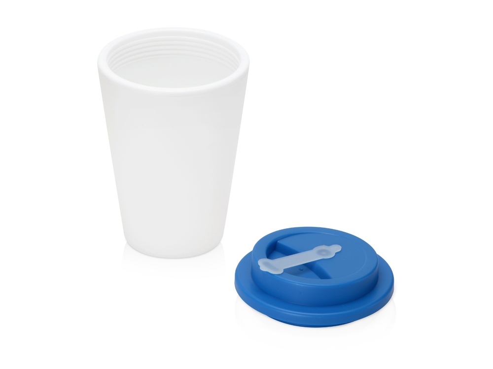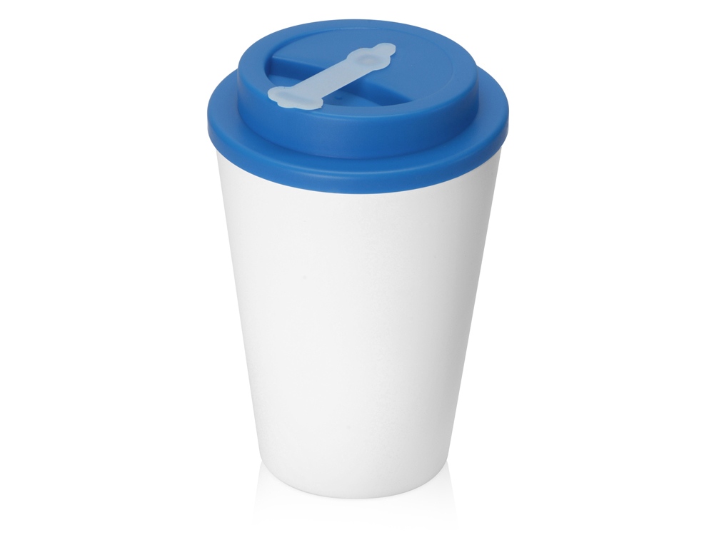 Пластиковый стакан Take away с двойными стенками и крышкой с силиконовым клапаном, 350 мл, белый/голубой