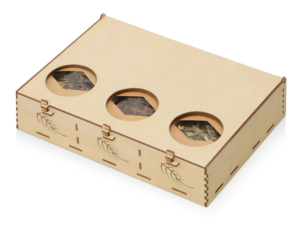 В продуктовый набор “Чайный лист” от бренда “Eat&Bite” входят три замечательных чая: фруктовый “Глинтвейн”, черный “Апельсин с имбирём”, травяной “Вечерний”. Набор чая самый универсальный подарок для человека, которого вы уважаете и цените. Чая никогда не бывает много, широкая палитра вкусов в нашем наборе, позволит угодить любому гурману. С помощью наших напитков можно каждый вечер создавать свое особенное настроение. Продуктовый набор отлично сочетается с десертами: вареньем, медом, драже из молочного шоколада и крем-мёд.
