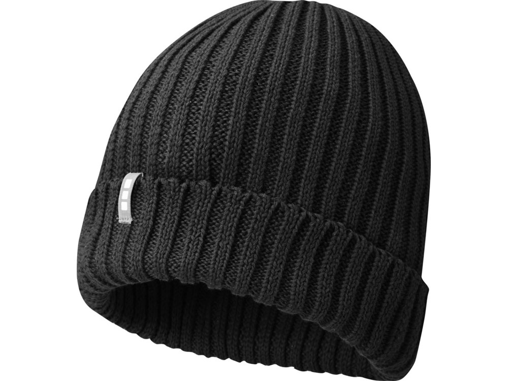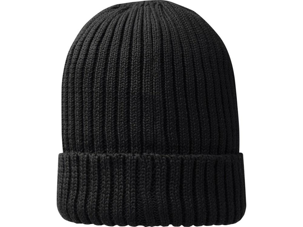 Однослойная шапка с двойным отворотом связана рибом 2х2 7 класса из 100% органического хлопка. Фирменная этикетка в виде петли.