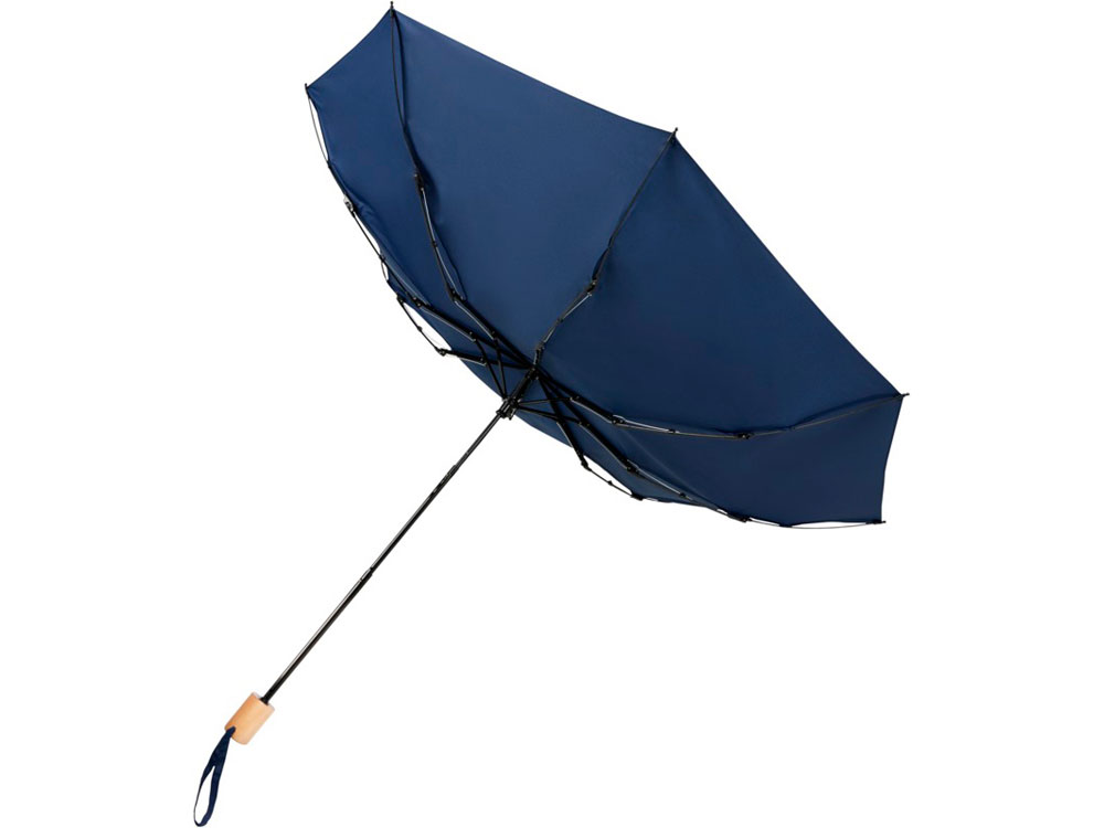 Birgit, складной ветроустойчивой зонт диаметром 21 дюйм из переработанного ПЭТ, темно-синий